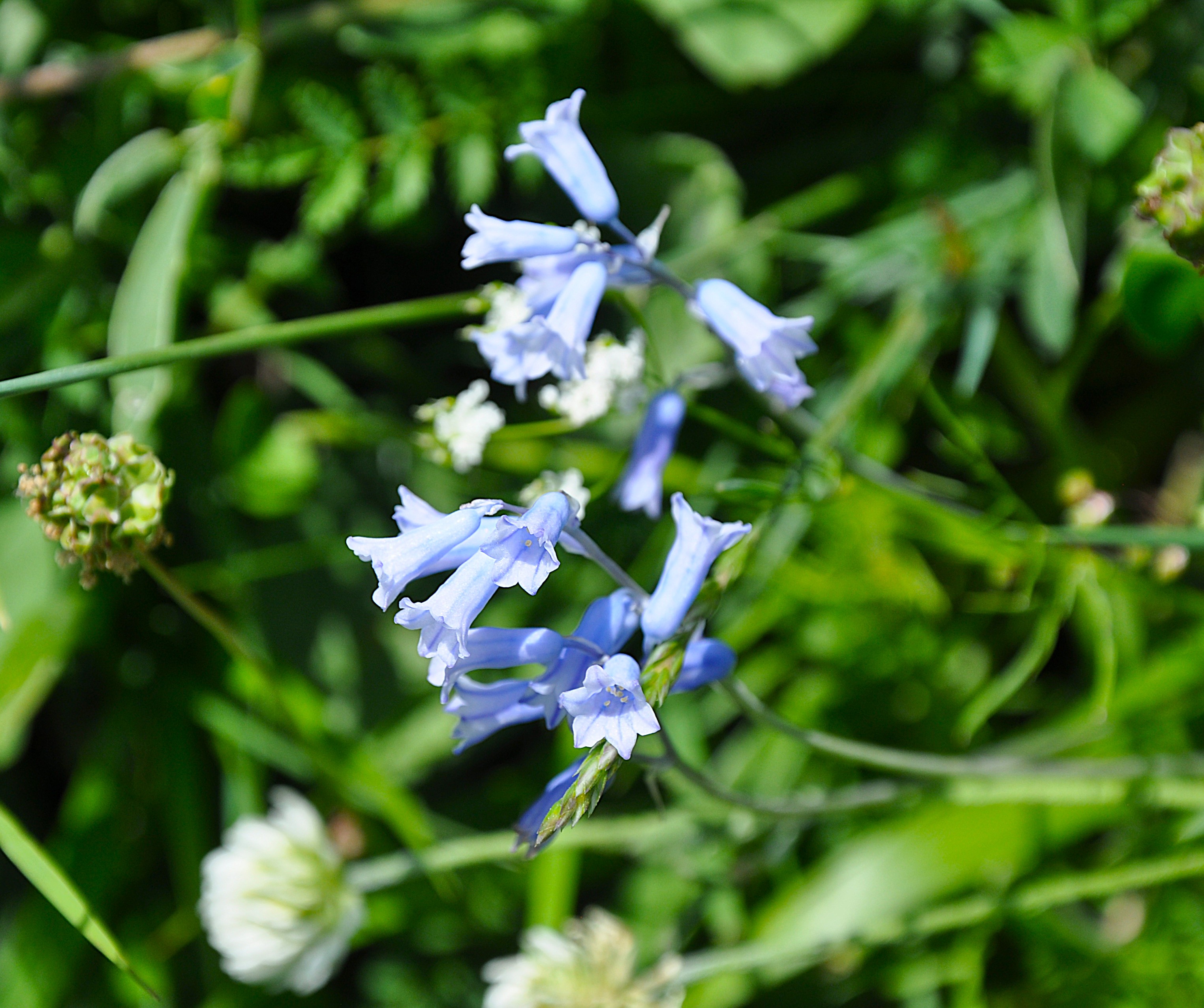 1. Ramonda myconi. 2. Pinguicula longifolia. 3. Brimeura amethystina. 4. Silene acaulis. 5. Soldanella alpina. 6. Euphorbia cyparissias. 7. Thalictrum aquilegiifolium. 8. Lonicera pyrenaica.