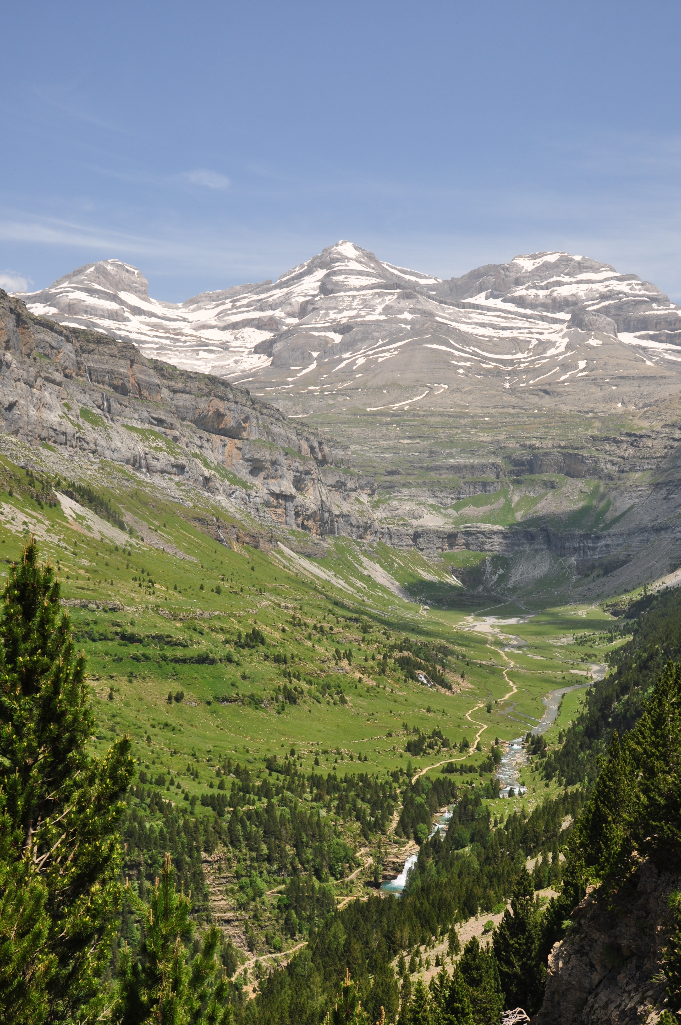 ORDESA. 1. Torla. 2. Mondarruego, Circo de Carriata y Punta Gallinero. 3. Circo y cascada de Cotatuero, la Fraucata. Al fondo: Dedo, Bazillac, Brecha de Roland y Pico del Casco. 4. Las tres Sorores (Cilindro de Marboré, Monte Perdido y Añisclo o Soum de Ramond). 5. Cascadas. 6. Circo de Soaso y Cola de Caballo.
