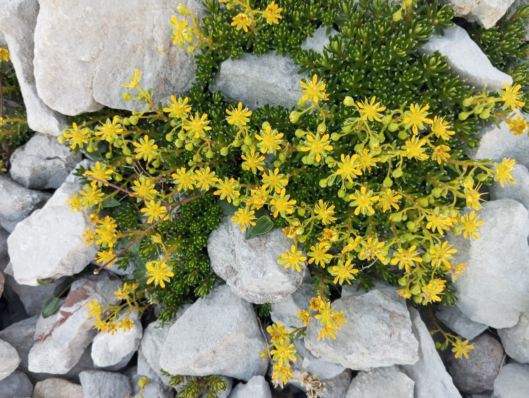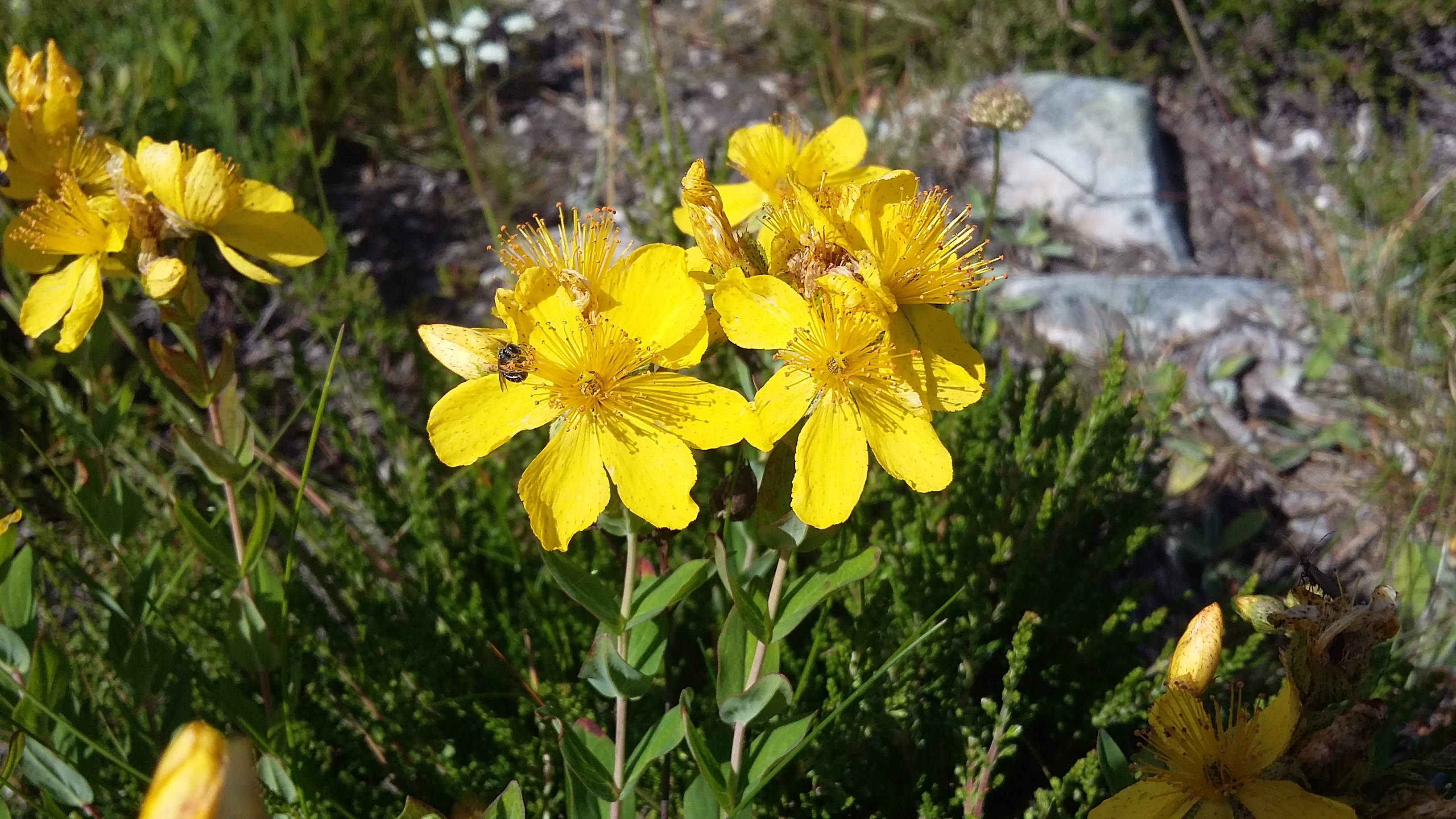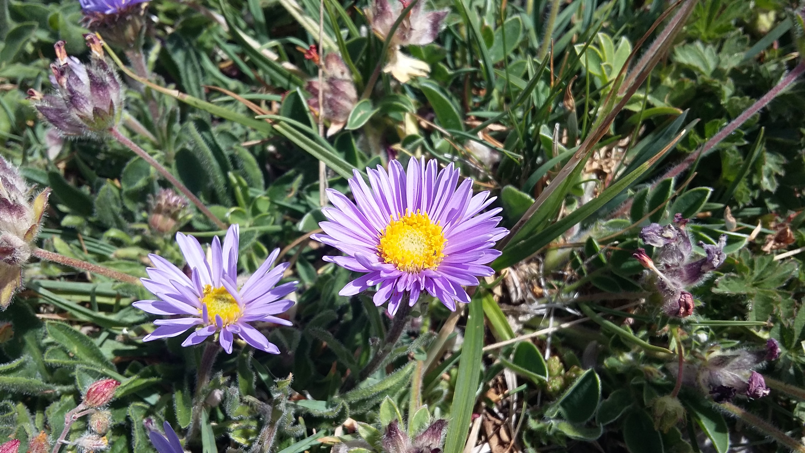 1. Geranium subargenteum. 2. Geranium sanguineum. 3. Campanula scheuchzeri. 4. Linaria alpina subsp. filicaulis. 5. Androsace villosa. 6. Hypericum richeri. 7. Narthecium ossifragum. 8. Gentiana lutea 9. Aster alpinus. 10. Chaenorhynum origanifolium. 11. Saxifraga aizoides.