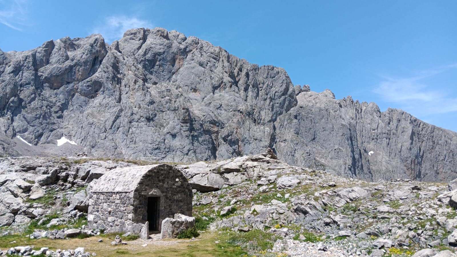 Vega Huerta se encuentra a los pies de una pared imponente de seiscientos metros de vertical. Peña Santa o Torre Santa (2.596 m) es la cumbre más elevada del Cornión o Macizo Occidental de los Picos de Europa. Un par de tiendas de vivac se encuentran montadas en la Vega, junto al pequeño refugio. Desde este lugar la panorámica del Macizo Central es excelente.