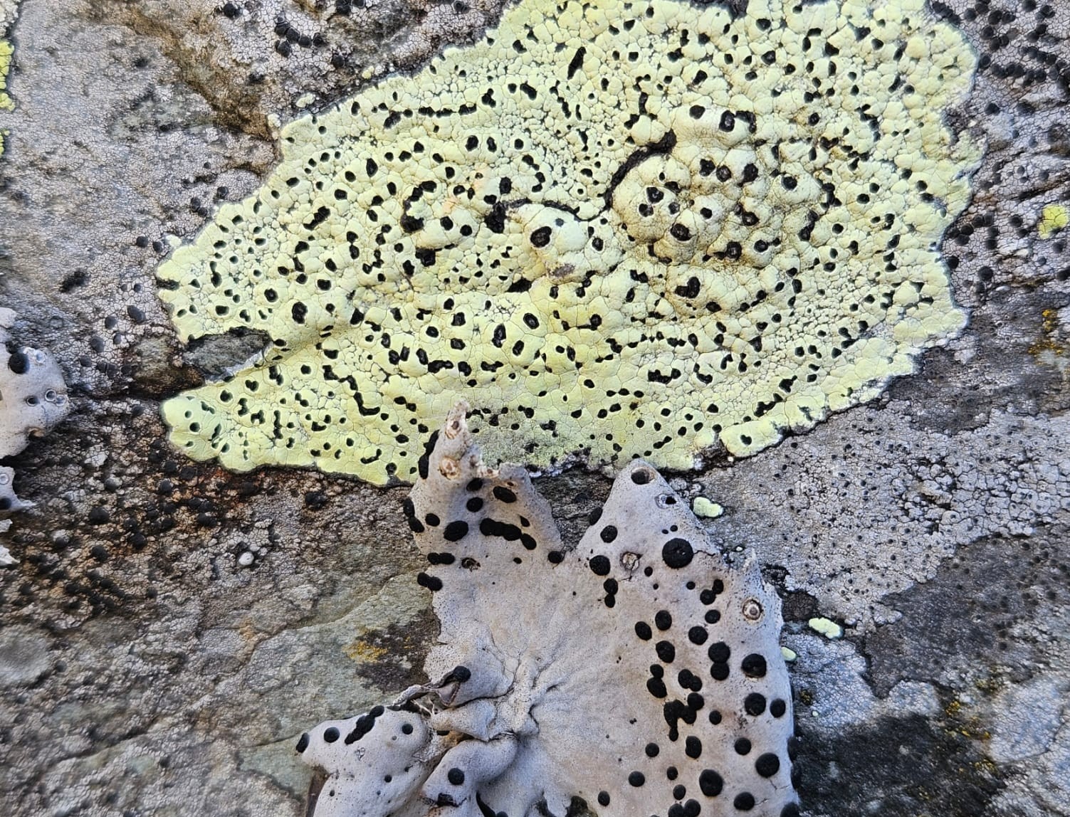 No pudimos dejar de prestar atención en la cumbre del Torruco a los líquenes, a los líquenes mapa (Rhizocarpon geographicum, Rhizocarpon lecanorinum) y a las umbilicarias (Umbilicaria spodochroa); también a alguna que otra bonita especie como Stereocaulon evolutum, liquen tripartito de aspecto entre arbustivo y coraliforme que recuerda a la nieve.
